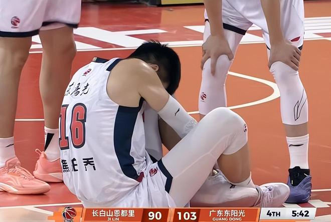 另一个值得广东球迷担忧的是内线球员焦泊乔。在末节还有5分42秒,焦泊乔被队友胡明轩绊倒,之后良久不起,被队友扶着单脚跳走离场。他的伤情到底有多重?牵动着了广东球迷的心。据报道赛后焦泊乔还出席了新闻发布会。他本场表现不错,给吉林队制造了杀伤,获得8次罚球,出场15分钟拿到11分和7板,也许他获得并列全队最多的篮板球,有资格出发布会。
