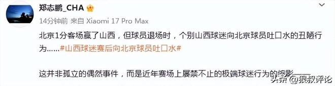 北京1分客场赢了山西,但球员退场时,个别山西球迷向北京球员吐口水的丑陋行为……