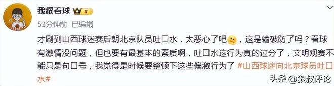 山西现场球迷对北京球员吐口水引热议!陈盈骏妻子怒斥不文明行为