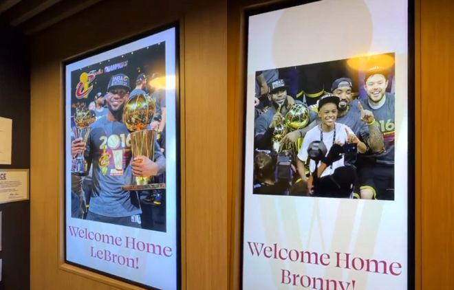 赛前,骑士队也在客队更衣室门口挂上了两张欢迎回家的海报,海报的主角是詹姆斯和他的儿子布朗尼。无独有偶,就在今天,有报道称,骑士对詹姆斯第三次加盟持欢迎和开放态度,当然前提是詹姆斯成为自由球员。毕竟,骑士已经超过第二土豪线,很难通过交易来得到詹姆斯。