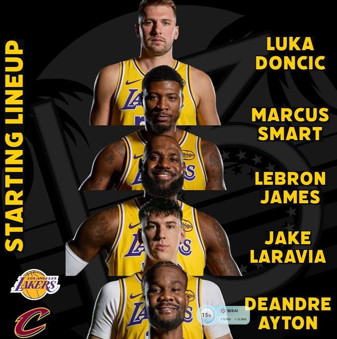 湖人:詹姆斯、拉拉维亚、艾顿、斯玛特、东契奇!