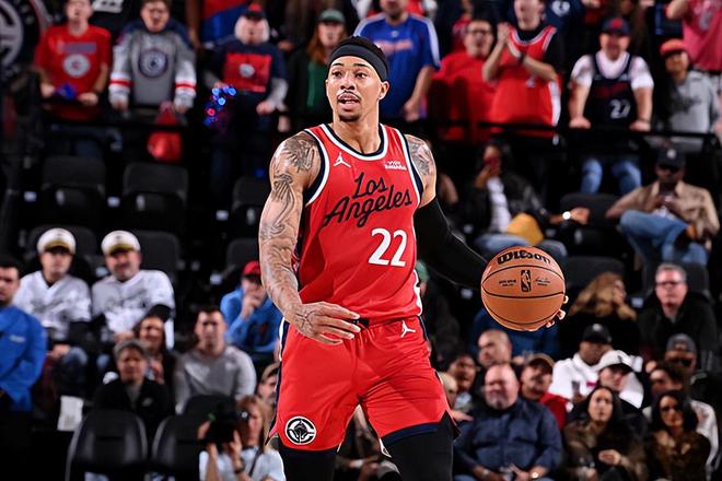本场比赛中,快船的替补侧翼新星乔丹-米勒(Jordan Miller)的表现并不能令人非常满意,与之前几场比赛相比也是出现了一定程度的下滑。米勒全场出场18分40秒,投篮6中3,三分线外2中0,罚球3中1,得到了7分3篮板1抢断的数据,还有2次犯规,正负值为-5。米勒在进攻端的表现其实非常一般,他的这7分中有5分都是来自于比赛强度已经明显下滑且比赛悬念大势已去的最后时刻。米勒在比赛常规时间并不能发挥出自己在进攻端的特点,他在突破和持球进攻方面的特点都没有发挥出来,他在外线投篮方面的稳定性也不太理想,他在防守端也没有什么突出的表现。之前几场比赛,米勒已经打出了超级第六人的水准,但是到了本场比赛,他的状态确实是平庸了一些。