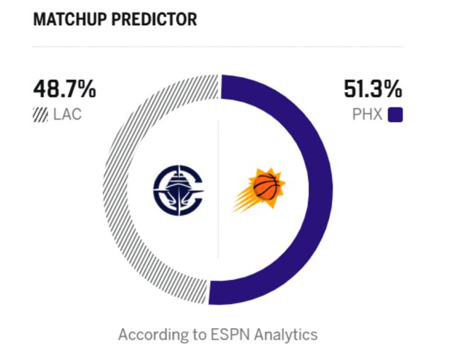 反观太阳,近期迎来3连胜,赛前以30胜19负的战绩排在西部第7,虽然球队交易杜兰特,买断了比尔,得到的杰伦格林长期缺阵,但是狄龙的加盟彻底激活球队的防守体系,加上阿伦、奥尼尔都打出3D属性,太阳反而成为西部的黑马球队。此役伤病方面,布克、格林继续缺阵,快船这边琼斯、华盛顿因伤缺阵,哈登也因为个人原因缺席比赛,桑德斯进入首发替代哈登。ESPN认为太阳近期状态火热,快船缺少哈登后赢球概率只剩48.7%。
