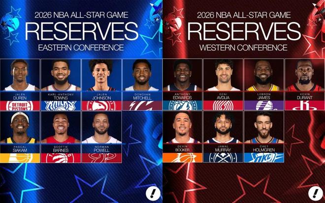 来自NBA官方的消息,2026年的全明星替补名单正式公布,具体如下: