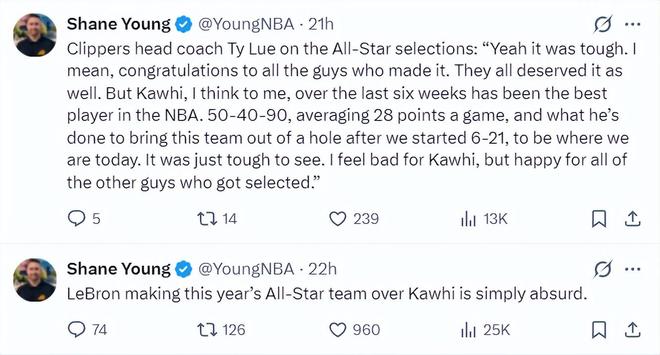 太阳记者Shane Young都为小卡抱不平:勒布朗可以入选今年全明星,而小卡却落选这太荒谬了吧!