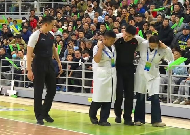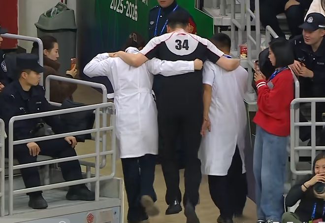 CBA赛场上,发生了罕见的一幕!在比赛中,34号裁判员跟腱拉伤,被医生搀扶离场,无奈之下,只留下2个裁判工作……