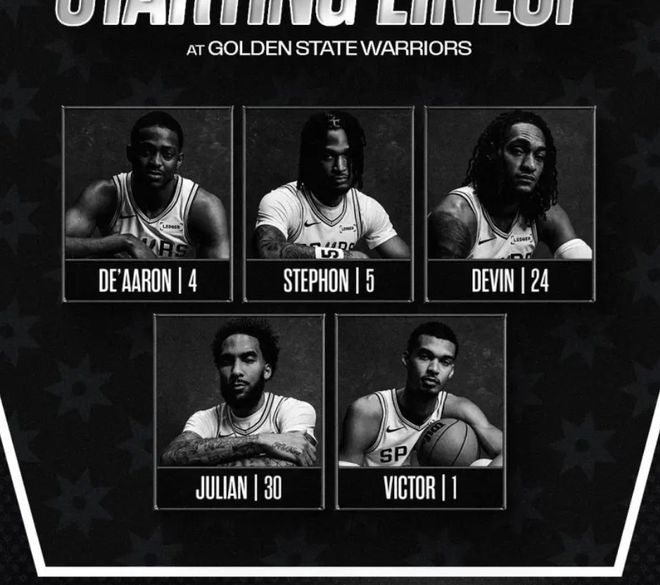 首发阵容方面,勇士队这边,库里(膝伤)缺席至全明星后,巴特勒赛季报销,刚引进的波尔津吉斯仍在恢复期,塞斯·库里、克赖尔也不打,科尔教练排出的首发五人组为:斯潘塞、梅尔顿、桑托斯、穆迪、追梦-格林;马刺这边,卡斯尔骨盆挫伤依旧带伤出战,首发阵容则为:卡斯尔、福克斯、瓦塞尔、尚帕尼、文班亚马。