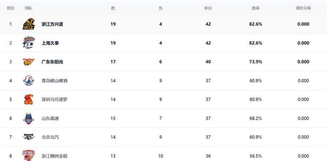 本赛季常规赛排名预测,上海队第1、浙江广厦队第2、广东队第3、北京首钢队第4,辽宁队在完成补强后大概率可以回到前8,但是想要进入季后赛四强几乎不可能。广东队和辽宁队想要在季后赛里走得更远,不仅需要实力,还需要一些运气。