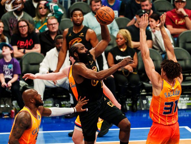 也无需和东部其他对手进行对比,之前在篮网包括在76人时期,哈登都能用行动证明,哪怕球队老大长时间缺阵,哈登也能把球队带到东部第一的高度。重点就是季后赛,当打之年的米切尔,连续两个赛季季后赛场均30分,内线双塔配置夯实,几个侧翼包括泰森+梅里尔+韦德都能兼顾产量和效率,阵容有9人轮转基础条件,实在找不到还有谁能挡住这支骑士。哈登要这么打下去,东部的悬念确实不大了。