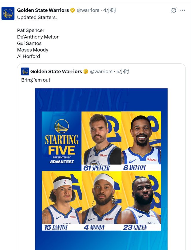 追梦格林也不打,活脱脱发展联盟烂队阵容。