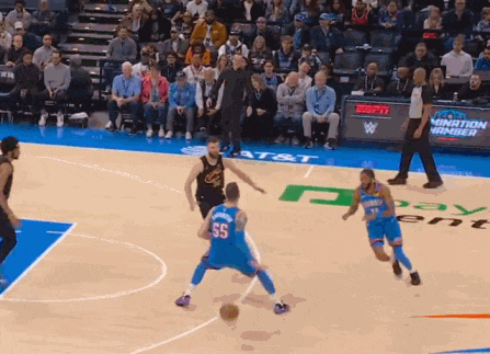 雷霆进攻点着米切尔和哈登,尽力消耗
