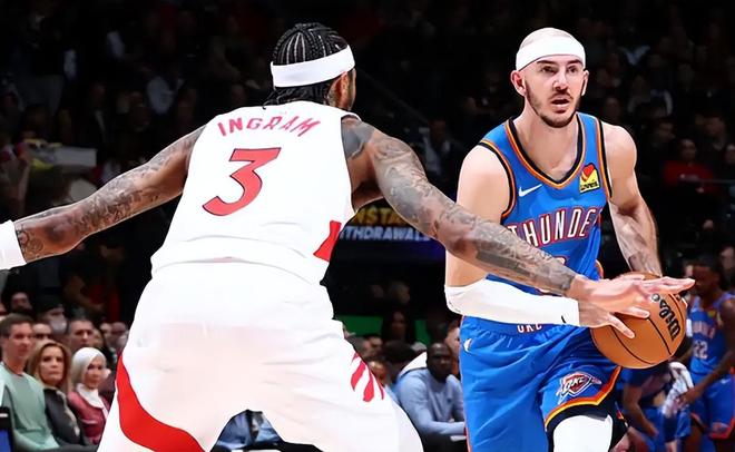 西部第一还是属于雷霆,这个比赛日他们在客场116-107掀翻了东部第5猛龙,迎来一波三连胜,以45胜14负稳居第一,还是领先了身后的马刺3个胜场。亚历山大、威廉姆斯还处于伤停的状态,但雷霆的阵容深厚,而且战术执行力非常强,总有不同的球员站出来,今天的比赛华莱士16投11中贡献了全队最高分27分8篮板7助攻,乔命中了6记三分,全场14投7中拿到了22分,替补出战的卡鲁索10投6中拿到了16分2篮板4助攻。