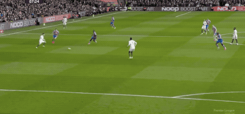第34分钟,水晶宫前场一次冒失回传,直接变成乌龙助攻,埃斯特旺断球后单骑闯关,突入禁区冷静推射破门,切尔西1-0领先。进球后,若昂·佩德罗第一时间跑来与他拥抱庆祝,这也是埃斯特旺加盟切尔西后的第二粒进球。上半场结束,切尔西1-0领先,两队合计只有9次射门,各自仅1次射正。