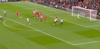 第25分钟,纽卡斯尔获得前场定位球机会,巴恩斯操刀主罚,皮球绕过人墙直奔右上角,但被立柱无情拒绝,利物浦逃过一劫。