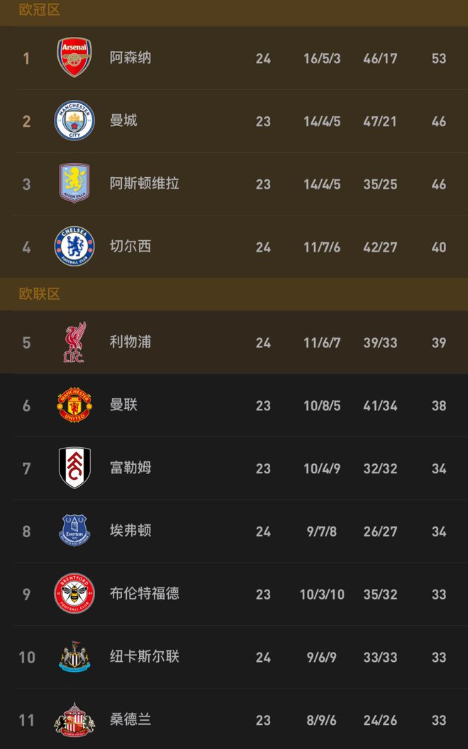 本轮英超还有5场比赛未打,曼联将在主场迎来积分榜第7位的富勒姆的挑战,而曼城则会做客面对“苦主”热刺,此外,维拉也将在主场面对布伦特福德,力争不被枪手拉开差距。