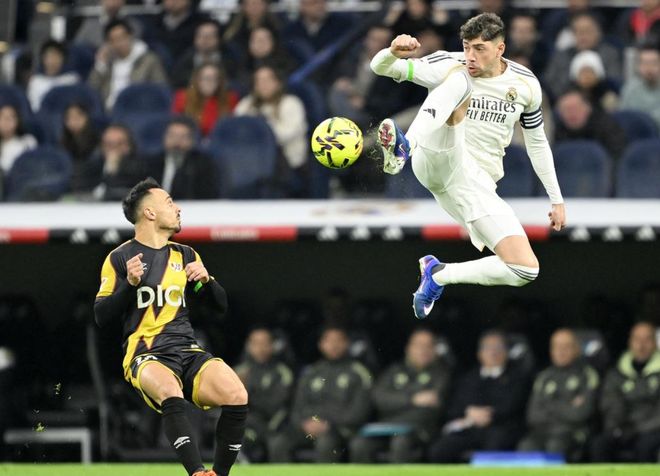 西甲第22轮的一场比赛展开争夺,皇马在主场迎战巴列卡诺。上半场,阿霍马克低射踢偏,维尼修斯兜射破门,居莱尔射门被扑出。下半场,德弗鲁托斯扳平比分,拉蒂乌浪费单刀机会,姆巴佩空门不进,西斯染红下场,姆巴佩第100分钟点射绝杀。最终,皇马2-1巴列卡诺。皇马落后巴萨1分,排名第2。