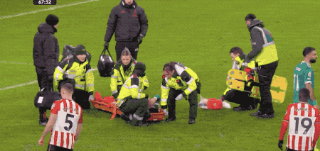 第64分钟,远藤航解围后疑似拉伤,伤势严重被担架抬出球场,远藤航掩面疑似落泪。