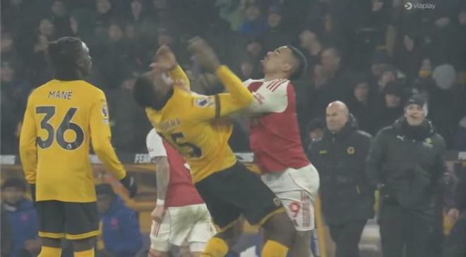 枪迷也知道这两人之前的过节,但这不构成本场比赛热苏斯报复性上手的理由,上场是上场,你这场动手了,裁判要真是罚,你只能认栽……好在只是黄牌。