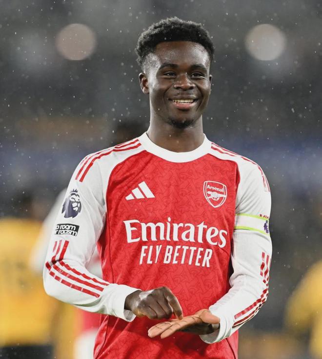 萨卡进球后的庆祝动作暗示他已经和阿森纳签字续约。