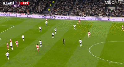 前场刚打开局面,仅仅3分钟后阿森纳后场却失误送上大礼,赖斯回防将球断走,然而他却有些粘球,带着带着被穆阿尼反抢再将球抢走,穆阿尼反断成功后横切杀入禁区,连续调整闪出空当大力抽射,皮球直入网窝,热刺1:1快速扳平比分。易边再战阿森纳继续加强进攻,开场仅1分钟,阿森纳右路压上,延贝尔45度角处拿球精准斜塞,热刺防守漏人,禁区弧顶处无人防守的哲凯赖什停球从容调整后半转身右脚大力兜射,皮球直入球门左下死角,阿森纳2:1再次取得领先。