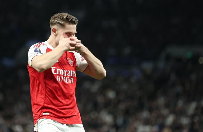 在英超第27轮的北伦敦德比中,双方上半场战成1-1平。第47分钟,廷贝尔右路将球送到弧顶,皮球穿越了6名防守球员,送到了弧顶处哲凯赖什的脚下。埃泽在前点与德拉古辛对抗,身后的哲凯赖什无人防守,停球后一记势大力沉的抽射挂入死角,令门将无可奈何!