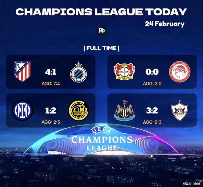 北京时间2月25日,昨夜今晨,足坛又有新的重大事件发生,欧冠淘汰赛附加赛进行,国米遭双杀出局,纽卡、马竞和勒沃库森晋级。