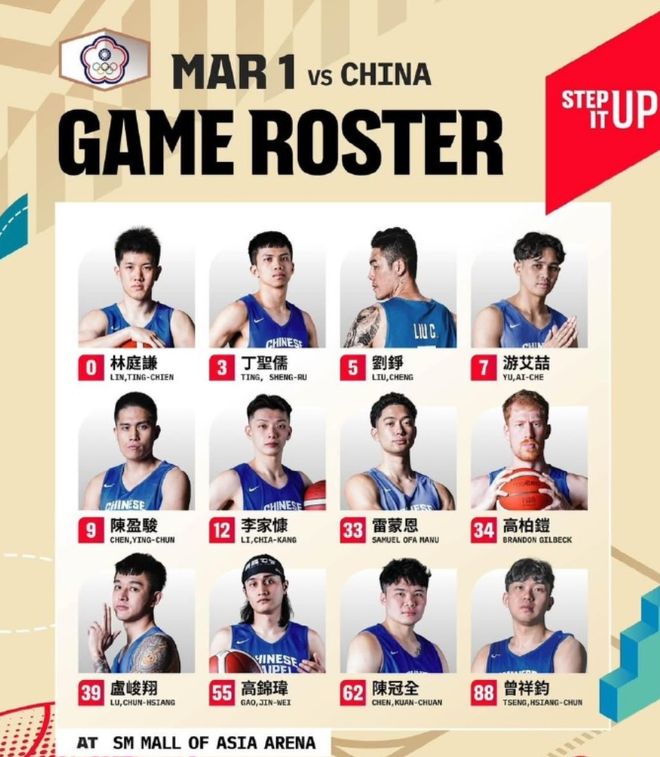 中国台北男篮的阵容高度本就一般,主要靠归化中锋高柏铠支撑全队的体系,外线则是靠陈盈骏和林庭谦等在CBA征战的后卫提供进攻火力。结果在对阵韩国男篮的比赛中,中国台北男篮的前锋马建豪突然撕裂了韧带,只能提前退赛,于是他们找来了后卫游艾喆顶替,身高进一步变小。