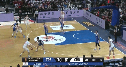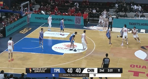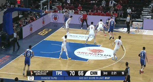 林庭谦、陈盈骏相继得分再度拉大分差!中国男篮66-75中国台北