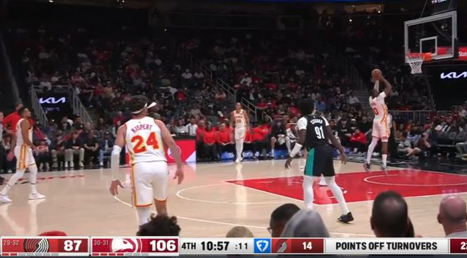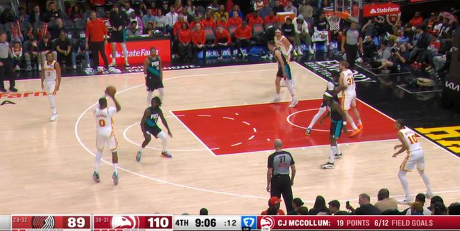 ——第三球利用开拓者的防守失误直接篮下强起,这一次小杨成了背景板