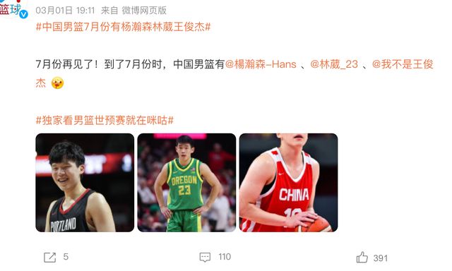 目前来看进入到7月份,NBA以及NCAA的比赛都会全部结束。到那个时候,如果杨瀚森他们没有其他的安排,极有可能和王俊杰还有林葳都将回归中国男篮,中国男篮将以最强的阵容来迎战日本男篮,我们也有信心能够在主场将对方斩落马下。所以目前来看,这一次我们能够拿下三月份的比赛,对于整个中国男篮来说,应该都是一个非常振奋而且也极为利好的事情。因为这两场比赛极其艰难,熬过了这段时间,进入到7月份我们将更加主动。
