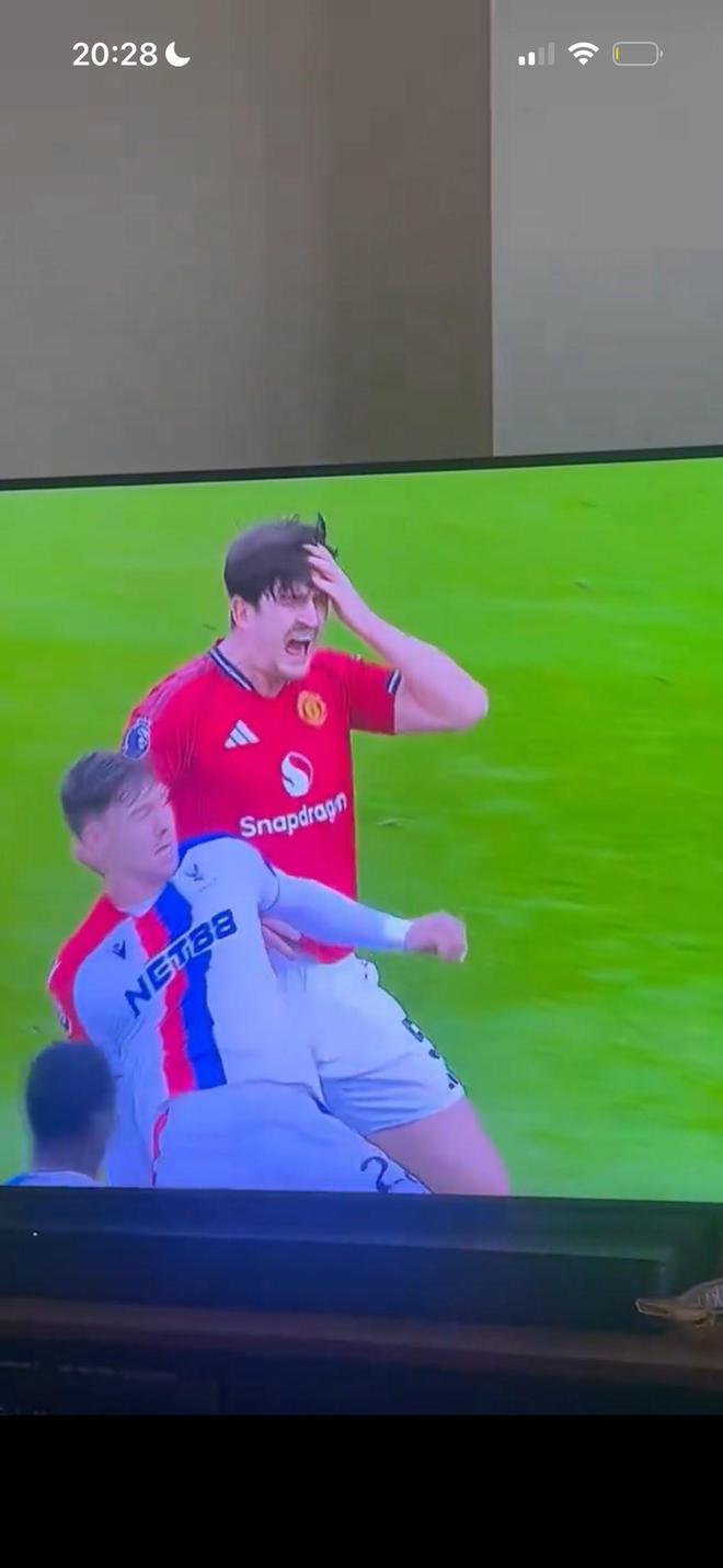 曼联2-1逆转水晶宫一役,马奎尔在与水晶宫前锋尤尔根-拉森的对抗中上演争议一幕。